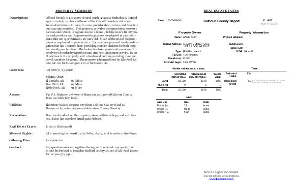 Offered for sale is 100 acres of rural south Arkansas timberland, located