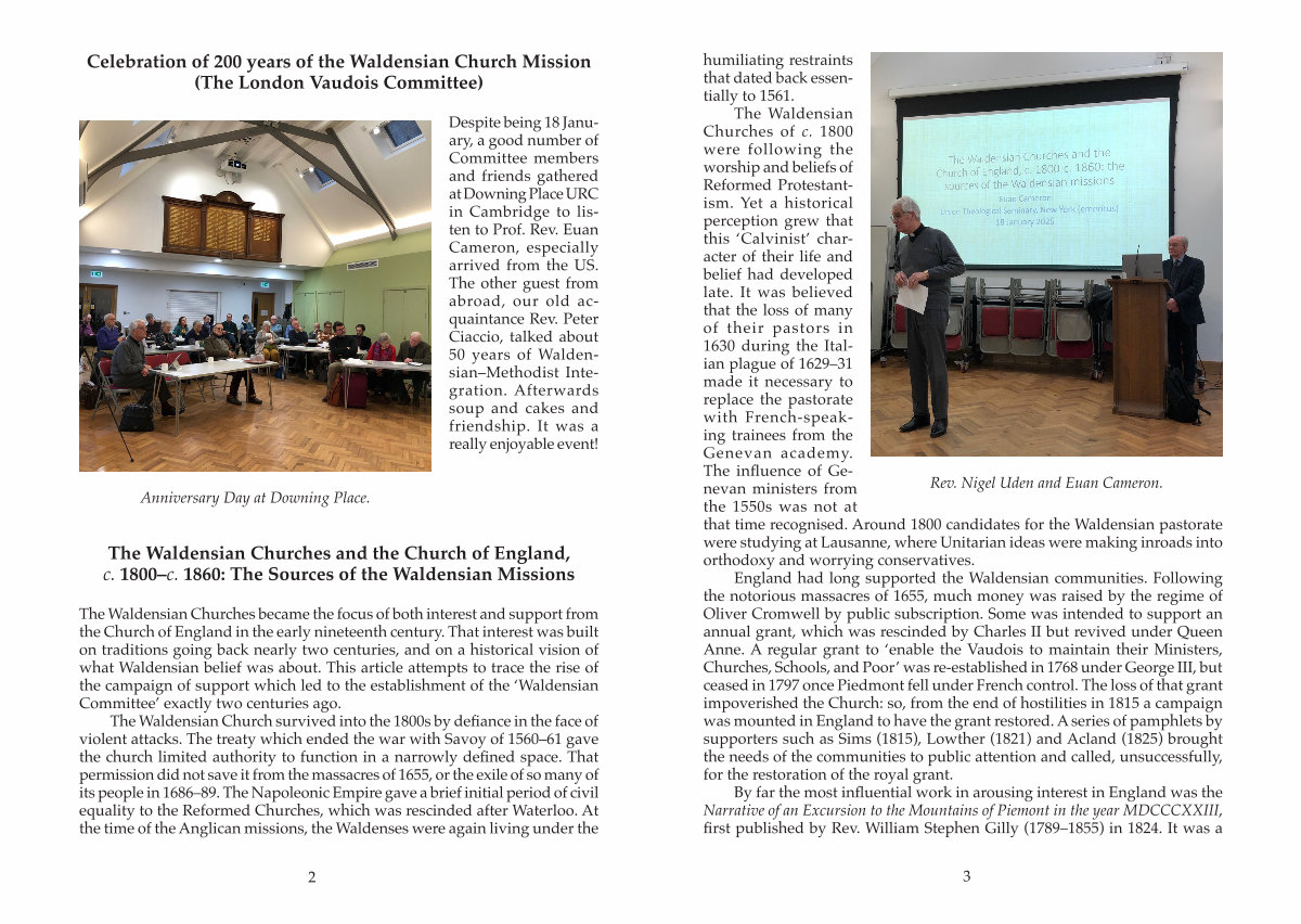 England had long supported the Waldensian communities. Following the notorious massacres of 1655, much money was raised by the regime of Oliver Cromwell by public subscription. Some was intended to support an annual grant, which was rescinded by Charles II but revived under Queen Anne. A regular grant to‘ enable the Vaudois to maintain their Ministers, Churches, Schools, and Poor’ was re-established in 1768 under George III, but ceased in 1797 once Piedmont fell under French control. The loss of that grant impoverished the Church: so, from the end of hostilities in 1815 a campaign was mounted in England to have the grant restored. A series of pamphlets by supporters such as Sims( 1815), Lowther( 1821) and Acland( 1825) brought the needs of the communities to public attention and called, unsuccessfully, for the restoration of the royal grant.