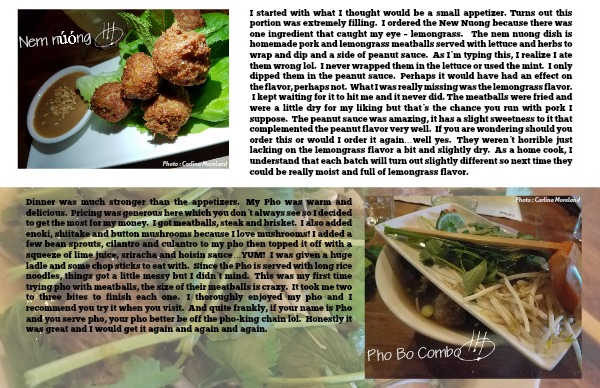 Dinner was much stronger than the appetizers. My Pho was warm and delicious. Pricing was generous here which you don’t always see so I decided to get the most for my money. I got meatballs, steak and brisket. I also added enoki, shiitake and button mushrooms because I love mushrooms! I added a few bean sprouts, cilantro and culantro to my pho then topped it off with a squeeze of lime juice, sriracha and hoisin sauce…YUM! I was given a huge ladle and some chop sticks to eat with. Since the Pho is served with long rice noodles, things got a little messy but I didn’t mind. This was my first time trying pho with meatballs, the size of their meatballs is crazy. It took me two to three bites to finish each one. I thoroughly enjoyed my pho and I recommend you try it when you visit. And quite frankly, if your name is Pho and you serve pho, your pho better be off the pho-king chain lol. Honestly it was great and I would get it again and again and again.
