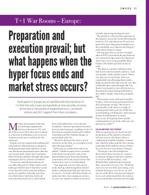 Participants in Europe are so satisfied with the transition of T + 1 that the only issues are hypothetical ones possibly occuring at the end of this period of heightened focus , command centres and 24 / 7 support from their custodians .