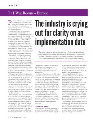 Discussions turned to the necessity of establishing a clear deadline for transitioning to T + 1 across the continent – and aligning , if possible , with the UK . This mirrors the approach that successfully mobilised the US to meet the 28 May 2024 settlement deadline . One expert emphasised the importance of setting a specific date : “ Picking a day – it ’ s huge . I ’ ve really only heard that this week and it makes perfect sense and that did make things very clear , there was no movement on that at all . Having a day everyone can work towards an achievable day as well .”