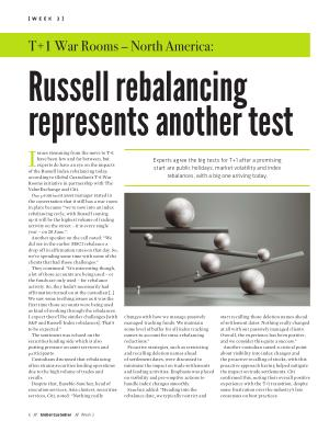 Issues stemming from the move to T + 1 have been few and far between , but experts do have an eye on the impacts of the Russell Index rebalancing today , according to Global Custodian ’ s T + 1 War Rooms initiative in partnership with The ValueExchange and Citi .