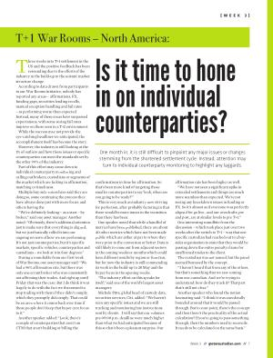 One month in , it is still difficult to pinpoint any major issues or changes stemming from the shortened settlement cycle . Instead , attention may turn to individual counterparty monitoring to highlight any laggards .