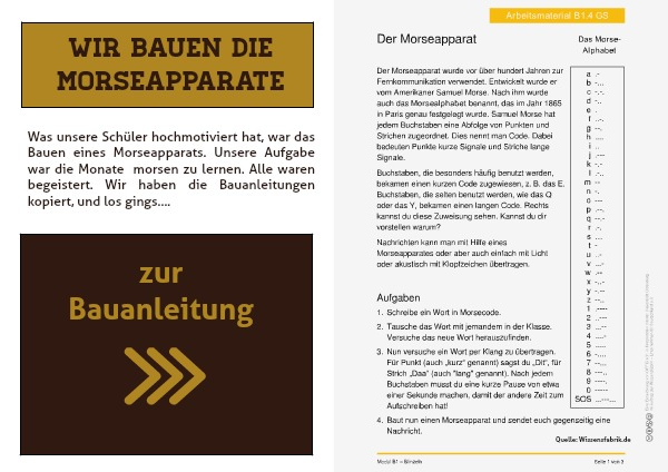 Was unsere Schüler hochmotiviert hat, war das Bauen eines Morseapparats. Unsere Aufgabe war die Monate morsen zu lernen. Alle waren begeistert. Wir haben die Bauanleitungen kopiert, und los gings....