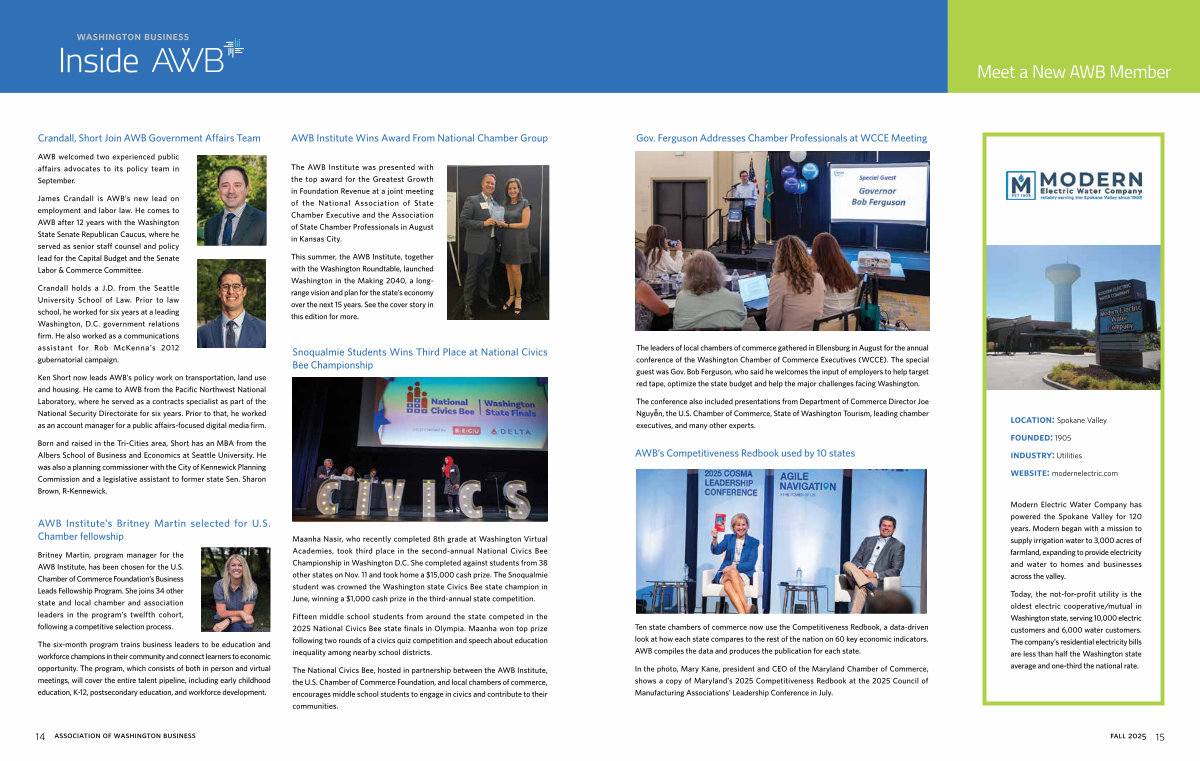 AWB’ s Competitiveness Redbook used by 10 states location: Spokane Valley founded: 1905 industry: Utilities website: modernelectric. com