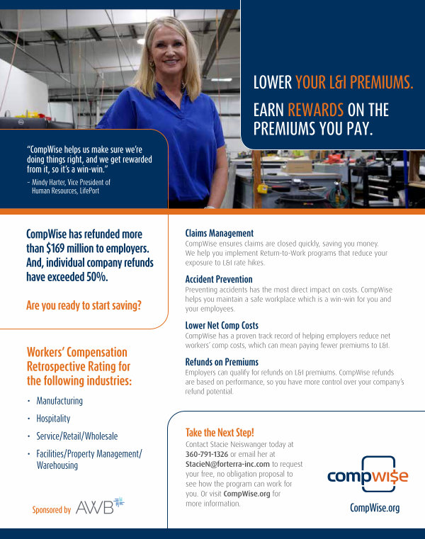 Contact Stacie Neiswanger today at 360-791-1326 or email her at StacieN @ forterra-inc. com to request your free, no obligation proposal to see how the program can work for you. Or visit CompWise. org for more information.