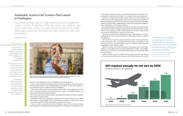 “ I think the Pacific Northwest is an ideal place to stand up manufacturing of sustainable aviation fuels . You ’ ve got Boeing , you ’ ve got airlines , you ’ ve got a national lab , and WSU .”