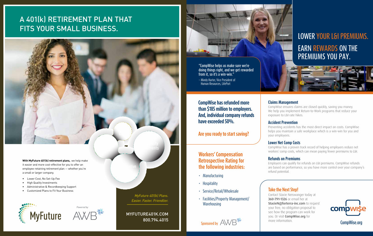 With MyFuture 401( k) retirement plans, we help make it easier and more cost-effective for you to offer an employee-retaining retirement plan— whether you’ re a small or larger company.