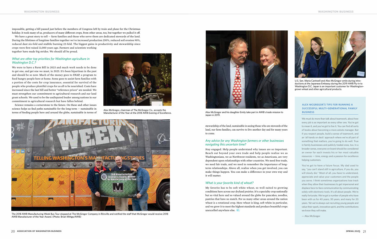 The 2018 AWB Manufacturing Week Bus Tour stopped at The McGregor Company in Ritzville and notified the staff that McGregor would receive 2018 AWB Manufacturer of the Year Award.( Photo: Brian Mittge / AWB)