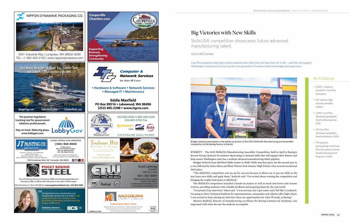EVERETT – The 2025 SkillsUSA Manufacturing Assembler Competition, held in April at Boeing’ s Everett factory, featured 58 students showcasing in-demand skills that will support their futures and help ensure Washington state has a resilient advanced manufacturing talent pipeline.