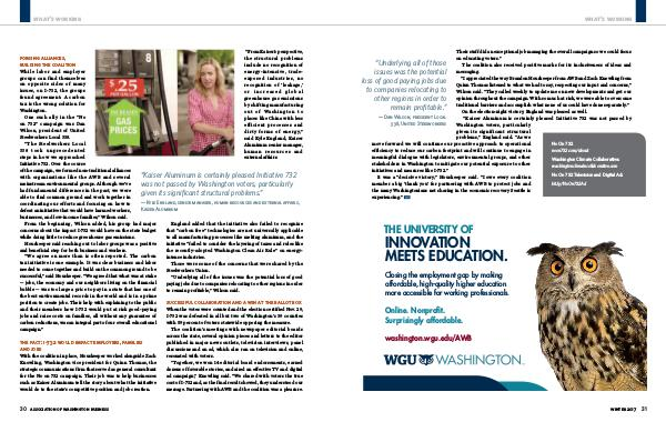 “ I appreciated the way Brandon Houskeeper from AWB and Zach Knowling from Quinn Thomas listened to what we had to say, respecting our input and concerns,” Wilson said.“ They called weekly to update me on new developments and get our opinion throughout the campaign. With so much at risk, we were able to overcome traditional barriers and accomplish what none of us could have done separately.” On the election-night victory, England was pleased as well.“ Kaiser Aluminum is certainly pleased Initiative 732 was not passed by Washington voters, particularly given its significant structural