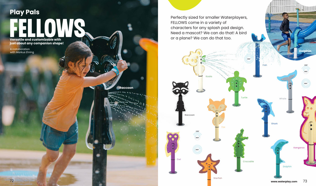 Perfectly sized for smaller Waterplayers, FELLOWS come in a variety of characters for any splash pad design. Need a mascot? We can do that! A bird or a plane? We can do that too.