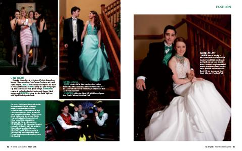 GIRLS’ NIGHT Stopping for a selfie, the girls show off short dresses from Macy’s, Wayne, and shoes from Famous Footwear and Lord & Taylor, Wayne. JESSICA rocks a Ruby Rox strapless and Touch of Nina Marsha sandals. DANI is pretty in a pink Hailey Logan slip dress and Touch of Nina Fylnlie wedges. STEPHANIE sparkles in a silver Bee Darlin’ strapless and Caparro Shiloh wedges, and CHRISTINA glows in a Bee Darlin’ high-low with Papell Studio Lynette heels. Our models are Wayne residents and students from IMMACULATE HEART ACADEMY, MOUNT SAINT DOMINIC ACADEMY, and WAYNE HILLS and WAYNE VALLEY high schools. Hair styling by Linda A. Perrette and her stylists, Mirlinda Bajraktari, Tiffany Caccese, Ariana Hackes, Jamie Mayorga and Daniela Ponte; and makeup by Alisandra Hart and Sihana Meta of PUBLIC IMAGE LTD., THE SALON in Wayne (pilthesalon.com, 973-633-9740). Ford SUV 16-passenger limousine provided by ULTIMATE PARTY BUS & LIMO in Wayne (ultimatepartybusandlimo.com, 855-47-PARTY or -72789). Photographed at THE BARNYARD AND CARRIAGE HOUSE in Totowa (www.barnyardandcarriagehouse.com, 973-790-6100). 42 WAYNE MAGAZINE MAY 2015 HAVING A BALL JARED chats with his date wearing a two-button, shawl collar After Six tuxedo, Formal Shirts tuxedo shirt and Cardi vest and bow tie with Barclay formal shoes from Classic Tuxedos, Butler. CHRISTINA glides in a Sherri Hill light-blue ball gown from Coco’s Chateau, Woodland Park.