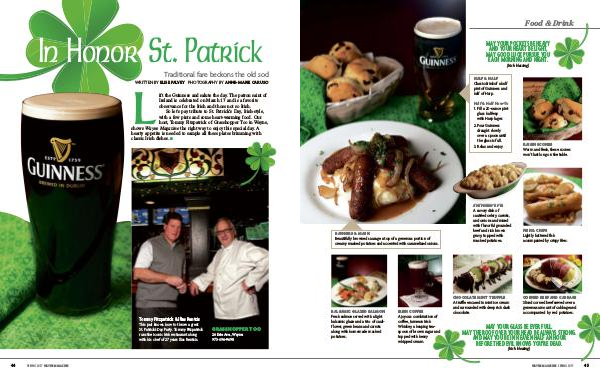 So let’ s pay tribute to St. Patrick’ sDay, Irish-style, with afew pints and some heart-warming food. Our host, Tommy Fitzpatrick of Grasshopper Too inWayne, shows Wayne Magazine the right way to enjoy this special day. A hearty appetite is needed to sample all these plates brimming with classic Irish dishes. ■