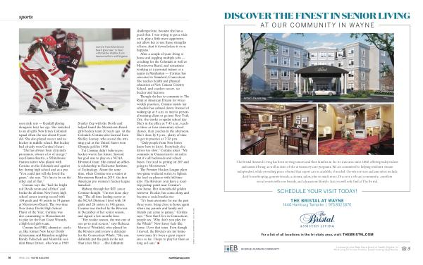 “ It ’ s been awesome for me the past three years , being close to home again where my parents and family and friends can come to games ,” Cornine says . “ Now that I live in Connecticut , people say , ‘ �hy don ’ t you play for the �hale� ’ New �ersey feels like home . I love that team . Even though I moved , the Riveters are my hometown team . It ’ s been a great experience sofar . Ihope to play for them as long as Ican .” ■