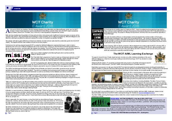 t the end of 2018, two charities, CALM (Campaign Against Living Miserably) and Missing People, jointly won the WCIT