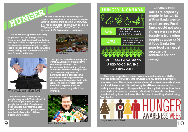The issue I'm doing is about Hunger in Canada. The issue is that the number of people using Food Banks are increasing. During 2008, 675 735 people used Food Banks. In 2012, 872 379 people used Food Banks, That is an increase of 196 644 people, in just 4 years.