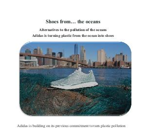 UltraBoost shoe, all made from plastic debris found in the ocean.
