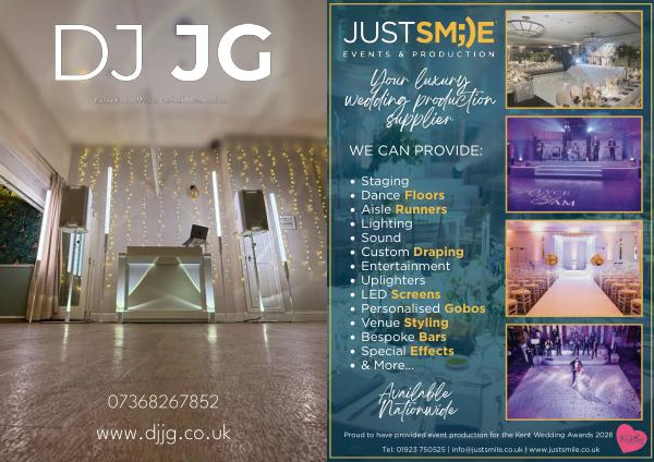 Proud to have provided event production for the Kent Wedding Awards 2026 Tel: 01923 750525 | info @ justsmile. co. uk | www. justsmile. co. uk wedinkent. co. uk • 117