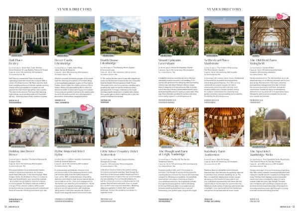 Situated amongst 14 acres of landscaped gardens, this 18th-century mansion turned sophisticated hotel makes for a stylish spot for couples to exchange their vows. The Spa Hotel displays numerous beautiful ceremony rooms, including the option to marry outside under the iconic Spa Temple. The team here champions each wedding’ s uniqueness and are there to lend a hand every step of the way, from choosing ceremony music right through to evening entertainment and finishing touches. theploughatleigh. com @ theploughatleigh ratsbury. com @ ratsbury _ barn _ weddings spahotel. co. uk @ the _ spa _ hotel wedinkent. co. uk • 155