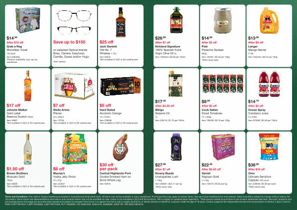e. Purchase limits may apply to certain items. See your local warehouse for more details. Dates and offers subject to change without notice. No cations. WA is subject to updated liquor legislation. * Total amount saved on purchase of one of each advertised sale item. Services, products and n alcohol on behalf of, a person under the age of 18 years. Costco supports the responsible service and consumption of alcohol. Liquor Licence: