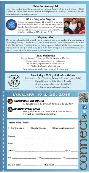 Sunday, January 27 during our Worship Service at 10:45 a.m.