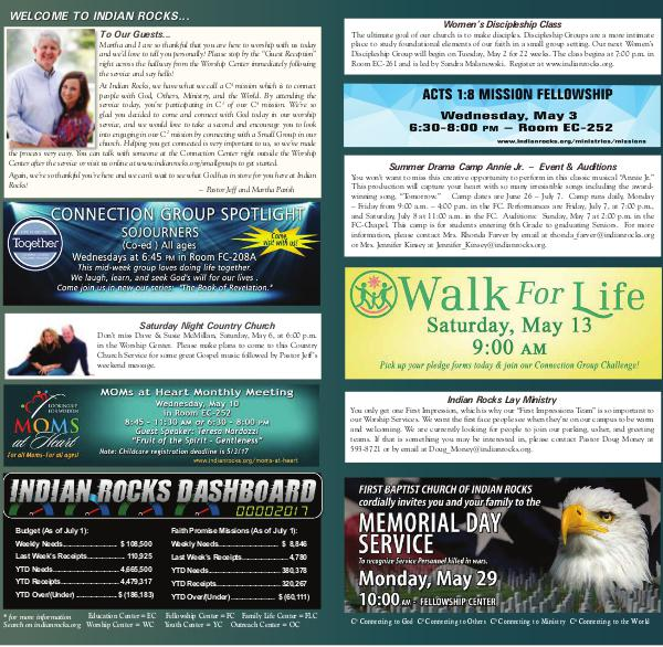Center after the service or visit us online at www.indianrocks.org/smallgroups to get started.