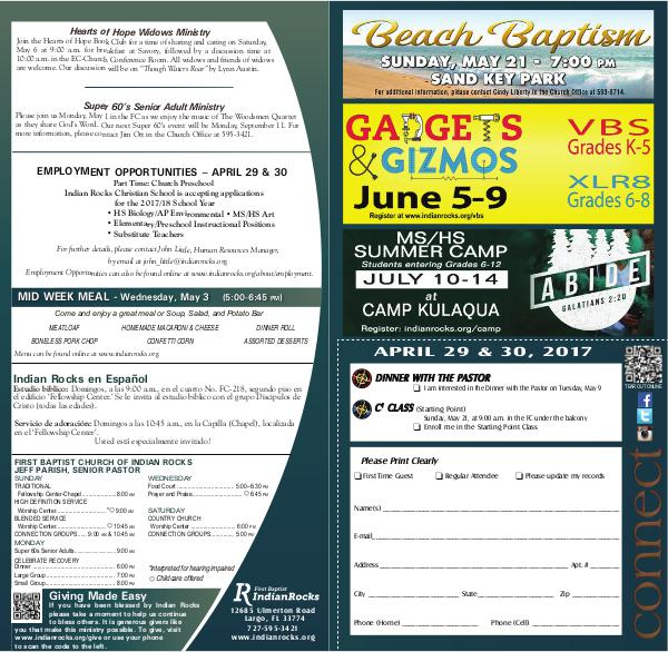 Super 60’ s Senior Adult Ministry Please join us Monday, May 1 in the FC as we enjoy the music of The Woodsmen Quartet as they share God’ s Word. Our next Super 60’ s event will be Monday, September 11. For more information, please contact Jim Ott in the Church Office at 595-3421.