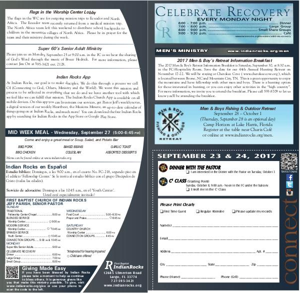At Indian Rocks, our goal is to make disciples. We do this through a process we call C4( Connecting to God, Others, Ministry and the World). We want this mission and process to be reflected in everything that we do and we have another tool with which we feel like we can fulfill that mission. The Indian Rocks Church App is available on all mobile devices. On this app you can livestream our services, get Pastor Jeff’ s weekly notes, a digital version of our weekly Heartbeat, the Missions Minute, an up-to-date calendar of things going on at Indian Rocks, and much more! You can download the free Indian Rocks app by searching for Indian Rocks in the App Store or Google Play Store.