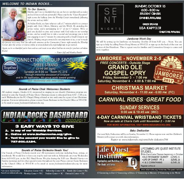 Center after the service or visit us online at www.indianrocks.org/smallgroups to get started.