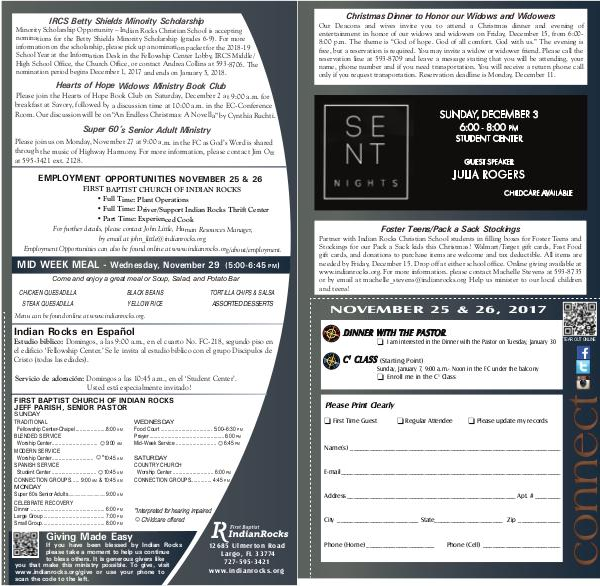 Please join us on Monday, November 27 at 9:00 a. m. in the FC as God’ s Word is shared through the music of Highway Harmony. For more information, please contact Jim Ott at 595-3421 ext. 2128.