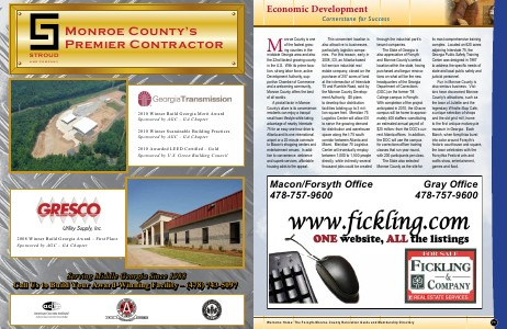 Monroe County is one of the fastest growing counties in the midstate Georgia area and also the 22nd fastest growing county in the U. S. With its prime location, strong labor force, active Development Authority, supportive Chamber of Commerce and a welcoming community, Monroe County offers the best of all worlds. A pivotal factor in Monroe County’ s allure is its convenience: residents can enjoy a tranquil small-town lifestyle while taking advantage of nearby Interstate 75 for an easy one-hour drive to Atlanta and its one international airport or a 20-minute commute to Macon’ s shopping centers and entertainment venues. In addition to convenience, ambience and superb services, affordable housing adds to the appeal.