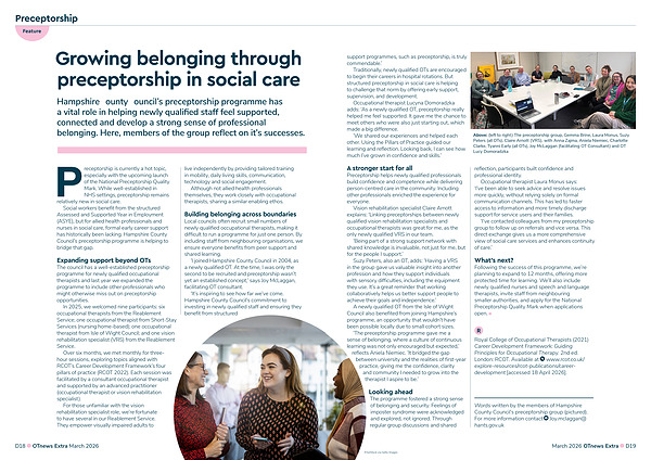 Traditionally, newly qualified OTs are encouraged to begin their careers in hospital rotations. But structured preceptorship in social care is helping to challenge that norm by offering early support, supervision, and development.