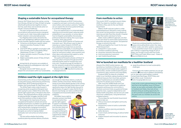 Look out for a joint authored feature by Katie and Paul in the April/May issue of OTnews, where, as your policy and public affairs leads in Scotland and Wales, they look at how elections bring an exciting opportunity for us all to promote occupational therapy and the great work our members do across the nations.