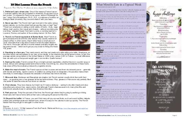 a sample of the typical French women’s diet who is living in the U.S.