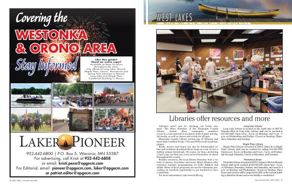 Like this guide? need an extra copy? Available at these locations throughout the area: City offices of Long Lake, Mound, Maple Plain, Orono, Minnetrista and Spring Park Libraries in Mound, Long Lake and Maple Plain Centennial Building in Mound