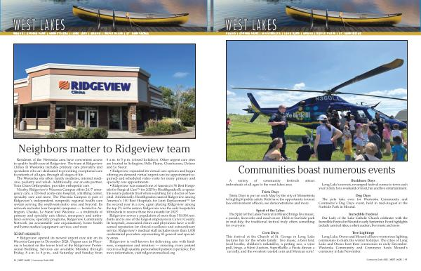 Ridgeview serves a population of more than 310,000 residents and is one of the largest employers in Carver County. Its hospitals, associated clinics and physicians have a wellearned reputation for clinical excellence and extraordinary service. Ridgeview’ s medical staff includes more than 1,000 credentialed providers representing 45 general and specialty areas.