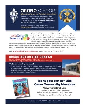 Visit ce. oronoschools. org / early-learning to learn more and register your child.
