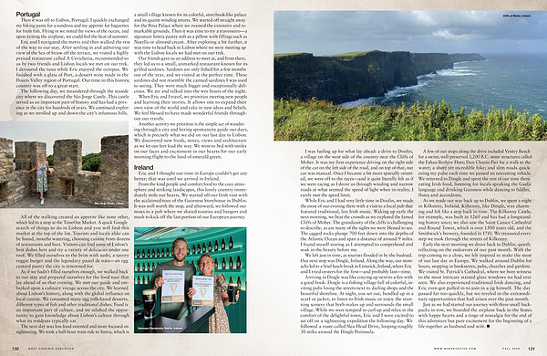 Another activity we prioritize is the simple act of wandering through a city and letting spontaneity guide our days , which is precisely what we did on our last day in Lisbon . We discovered new foods , stores , views and architecture as we let our feet lead the way . We went to bed with smiles on our faces and excitement in our hearts for our early morning flight to the land of emerald green .