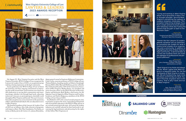 “ Events like the Lawyers & Leaders awards reception are so important for providing role models for what it means to be a leader of an organization and a community . In addition to highlighting the best of West Virginia ’ s legal community , it demonstrates to current law students there are multiple pathways to professional and personal fulfillment .”