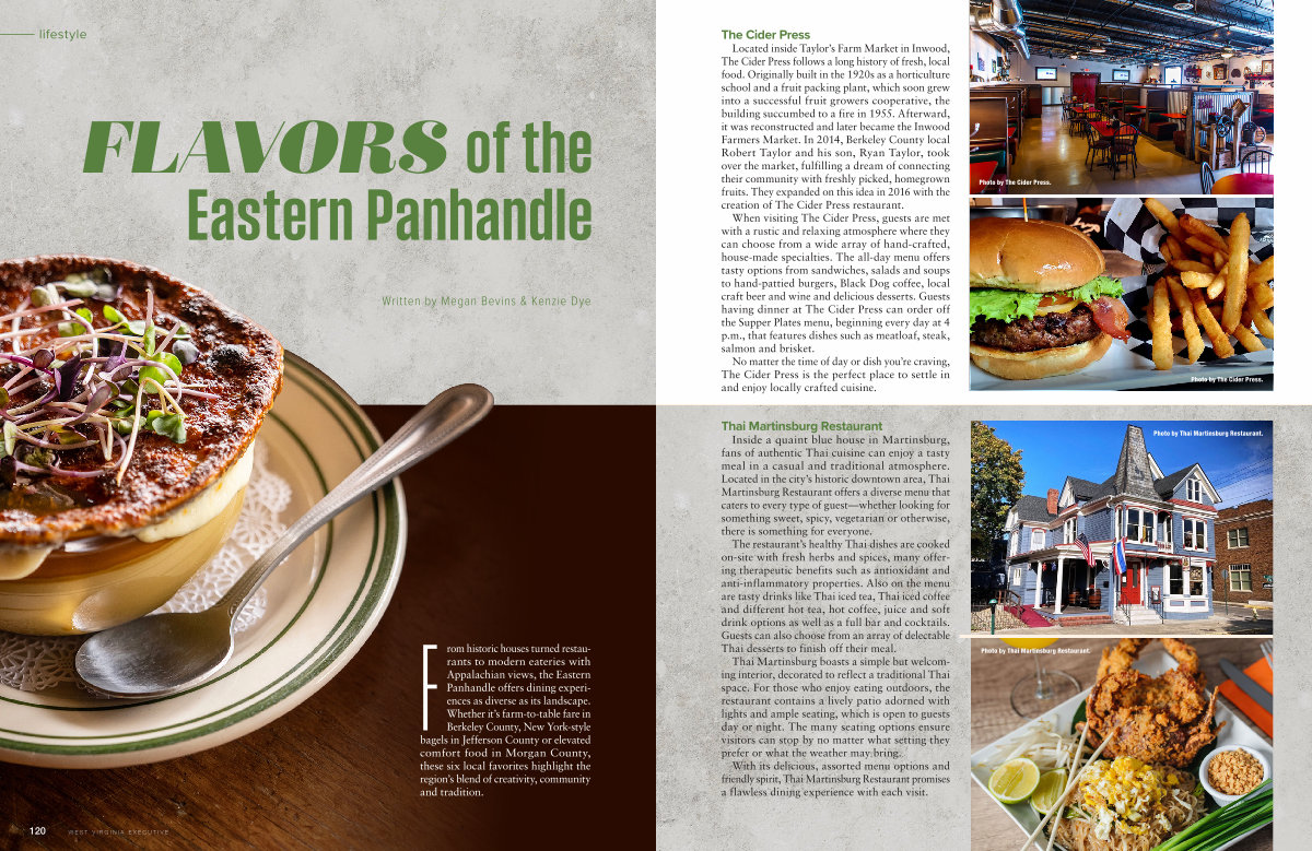 F rom historic houses turned restaurants to modern eateries with Appalachian views, the Eastern Panhandle offers dining experiences as diverse as its landscape. Whether it’ s farm-to-table fare in Berkeley County, New York-style bagels in Jefferson County or elevated comfort food in Morgan County, these six local favorites highlight the region’ s blend of creativity, community and tradition.