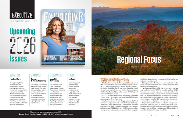 The upcoming Winter 2026 Health Care issue of West Virginia Executive will cover the innovations, advancements and successes of the Mountain State’ s health care industry and highlight the professionals and organizations that made them happen. This issue also features the publication Discover West Virginia.