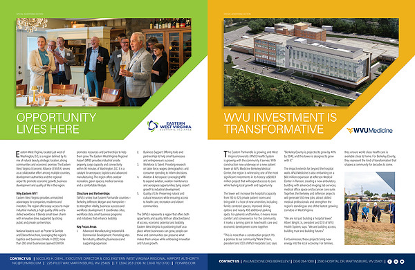 National leaders such as Procter & Gamble and Clorox thrive here, leveraging the region’ s logistics and business climate. In 2022, more than 280 small businesses opened. EWVEA promotes resources and partnerships to help them grow. The Eastern West Virginia Regional Airport( MRB) provides industrial airside property, cargo capacity and connectivity within 90 minutes of Washington, D. C. It is a catalyst for aerospace, logistics and advanced manufacturing. The region offers outdoor recreation, green spaces, medical services and a comfortable lifestyle.