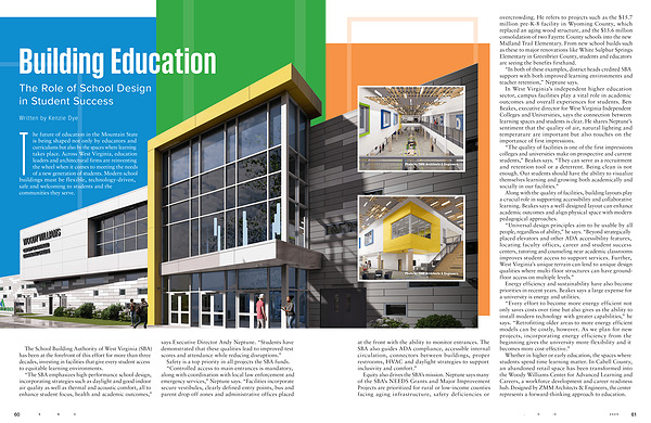 T he future of education in the Mountain State is being shaped not only by educators and curriculums but also by the spaces where learning takes place. Across West Virginia, education leaders and architectural firms are reinventing the wheel when it comes to meeting the needs of a new generation of students. Modern school buildings must be flexible, technology-driven, safe and welcoming to students and the communities they serve.