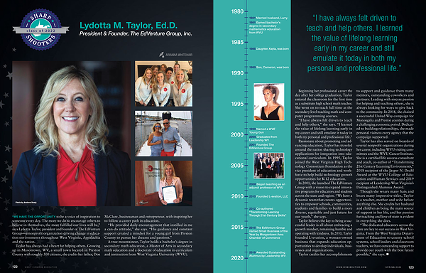 “ WE HAVE THE OPPORTUNITY to be a voice of inspiration to someone every day . The more we do to encourage others to believe in themselves , the more fulfilled our lives will be ,” says Lydotta Taylor , president and founder of The EdVenture Group — a nonprofit organization driving change in education environments throughout West Virginia , Appalachia and the nation .