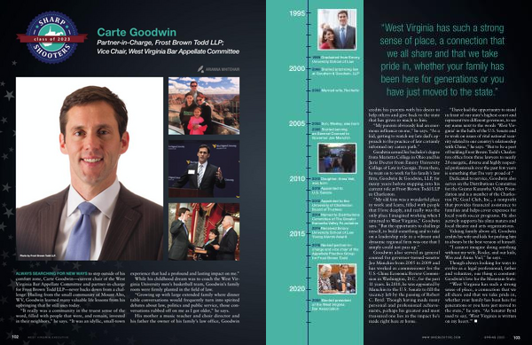 Though always looking for ways to evolve as a legal professional , father and volunteer , one thing is constant : Goodwin ’ s love for the Mountain State .