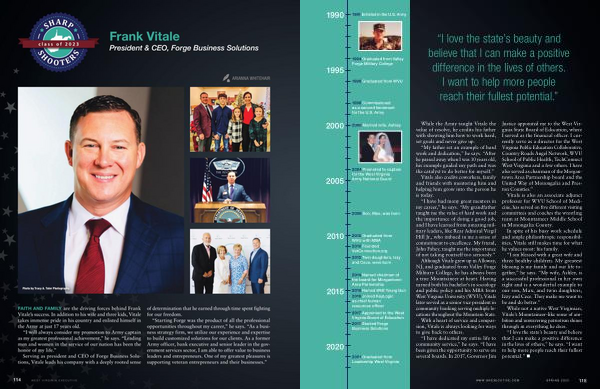 Although Vitale grew up in Alloway , NJ , and graduated from Valley Forge Military College , he has always been a true Mountaineer at heart . Having earned both his bachelor ’ s in sociology and public policy and his MBA from West Virginia University ( WVU ), Vitale later served as a senior vice president in community banking serving multiple locations throughout the Mountain State .