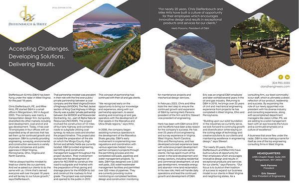 Eric was an original D & H employee and later worked several years in the oil and gas industry . Returning to D & H in 2018 , he brings over 20 years of civil and mechanical engineering experience from projects he has completed in West Virginia , Ohio and Pennsylvania .