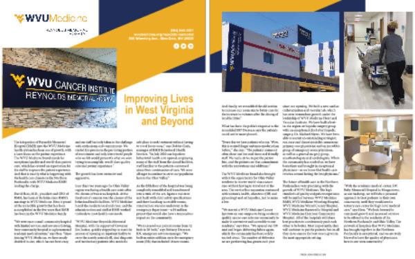 “ We started a WVU Medicine Cancer Institute on our campus to bring academic quality cancer care into our community to make it convenient and accessible to our residents ,” says Hess . “ We opened our OB unit and began delivering babies again , which the community has been wildly excited about . The number of deliveries we are performing has grown each year since our opening . We built a new cardiac catheterization and vascular lab , which has seen tremendous growth under the leadership of WVU Medicine Heart and Vascular Institute . We have built a bestin-the-region orthopedic surgery group with an exceptional chief of orthopedic surgery , Dr . Michael Myers . We have been able to recruit an outstanding urologist ; ear , nose and throat specialist ; numerous primary care physicians ; and an incredible group of emergency room physicians , as well as a general surgery group , anesthesiologists and cardiologists . When the community has needed us , we have been there and brought in exceptional physicians — as we know that health care revolves around having the best physicians .”