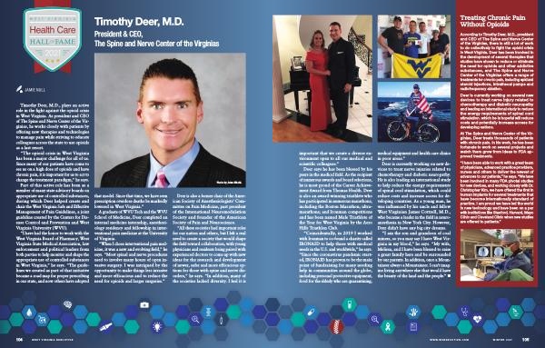According to Timothy Deer , M . D ., president and CEO of The Spine and Nerve Center of the Virginias , there is still a lot of work to do collectively to fight the opioid crisis in West Virginia . Deer has been involved in the development of several therapies that studies have shown to reduce or eliminate the need for opioids and other addictive substances , and The Spine and Nerve Center of the Virginias offers a range of treatments for chronic pain , including epidural steroid injections , intrathecal pumps and radiofrequency ablation .
